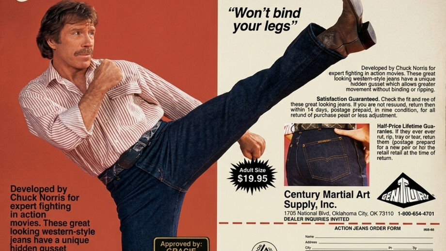 O legado de Chuck Norris vai muito além dos filmes de ação e dos sistemas de luta que ele criou; hoje, ele alcança o mercado de moda de luxo retrô. As lendárias Action Jeans, calças que o ator imortalizou em campanhas publicitárias entre as décadas de 1970 e 1990, tornaram-se itens de colecionador altamente cobiçados.