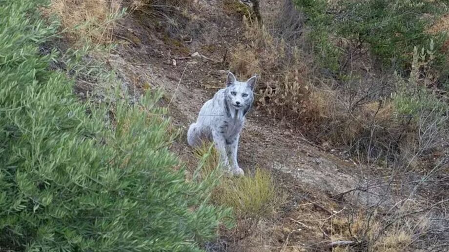 Após meses de monitoramento e espera por uma rara aparição, o fotógrafo espanhol Ángel Hidalgo conseguiu capturar a imagem de um lince-ibérico completamente branco.