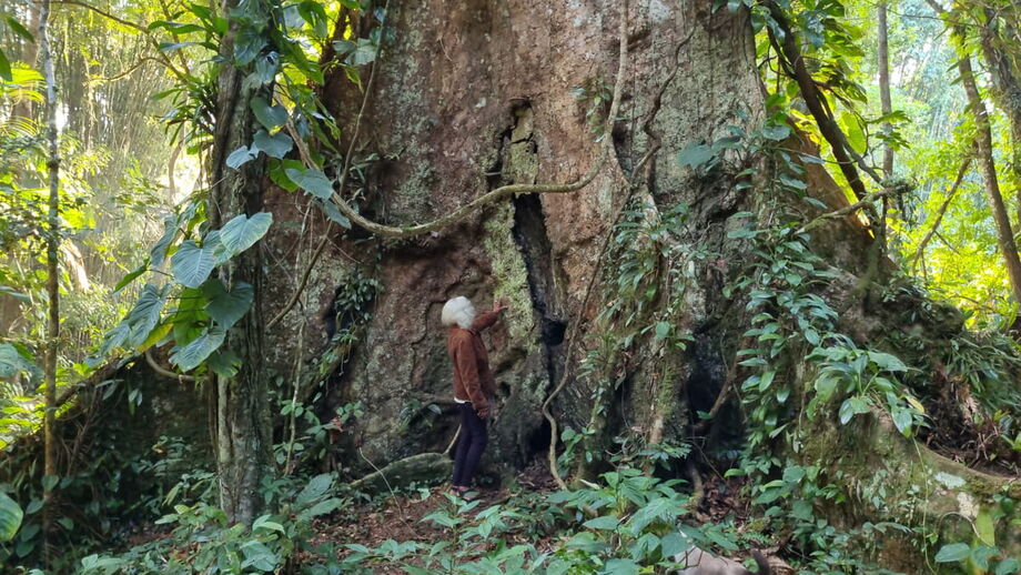 A árvore ocupa uma área preservada dentro do Sítio Bacarirá, transformado em Reserva Particular do Patrimônio Natural por Regina Valentim, de 74 anos, e Friedrich Widmer, de 85, que há quarenta anos convivem diariamente com a gigante.