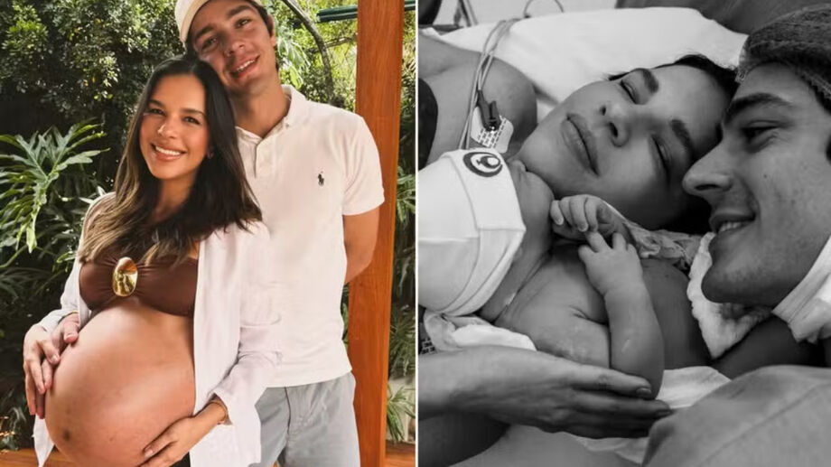Mariana compartilhou a novidade nas redes sociais com uma imagem registrada no momento do parto / Reprodução/Instagram @estudio_thalitacastanha