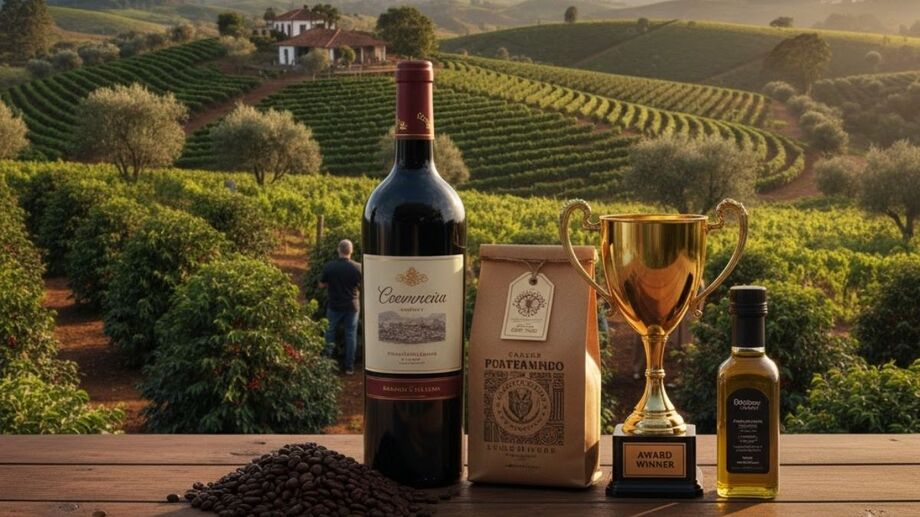 Nessa região, a produção de vinhos, café e azeites foram premiadas em diversas ocasiões fora do Brasil / Google Gemini/Imagem Gerada por IA